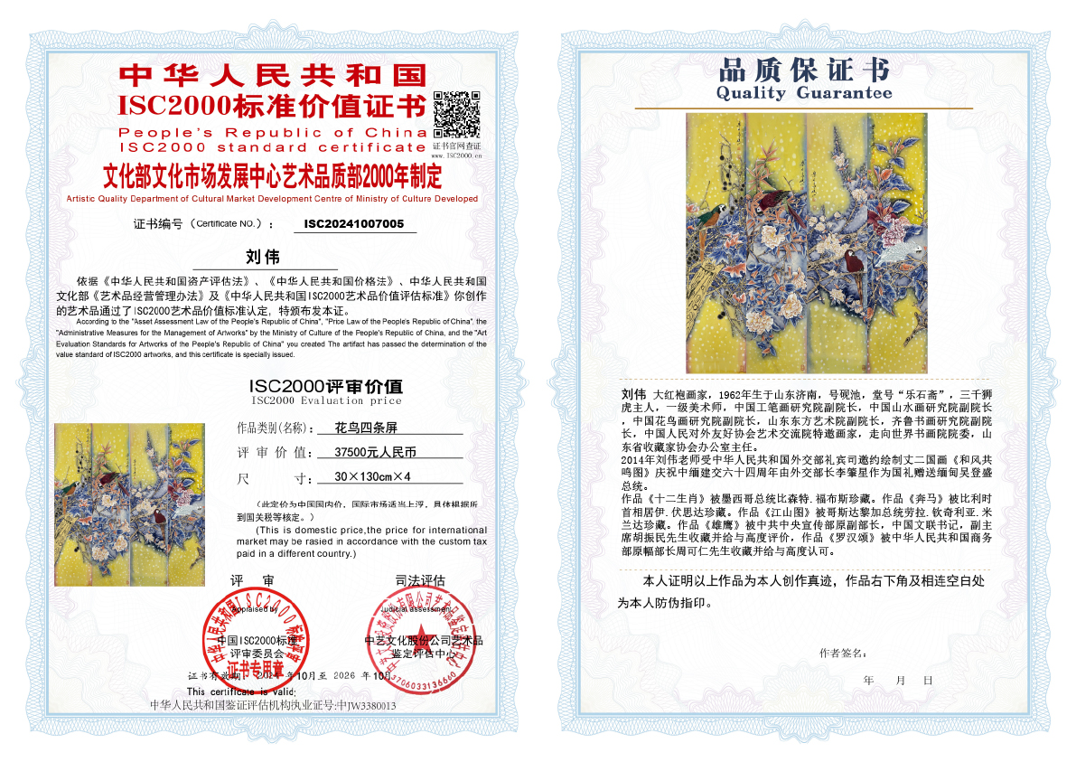刘伟《花鸟四条屏》